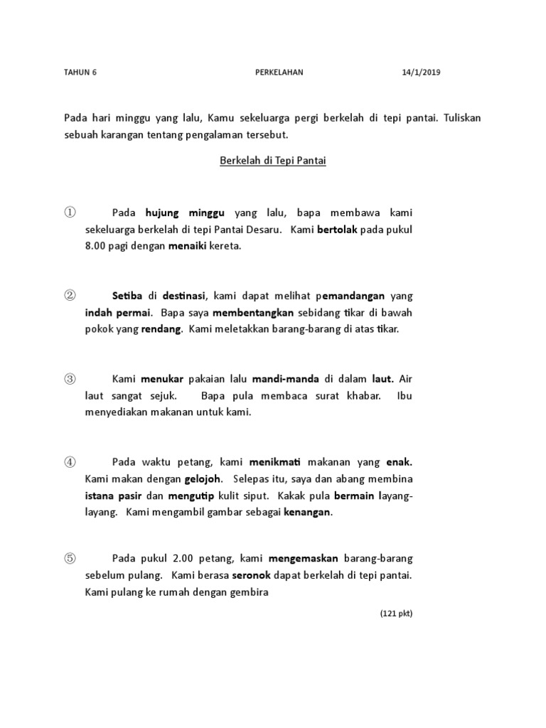 Contoh Karangan Berkelah Di Tepi Pantai