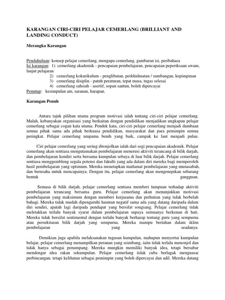 Contoh Karangan Ciri Ciri Pelajar Cemerlang Mudah Dan Terbaik In 2020 Projects