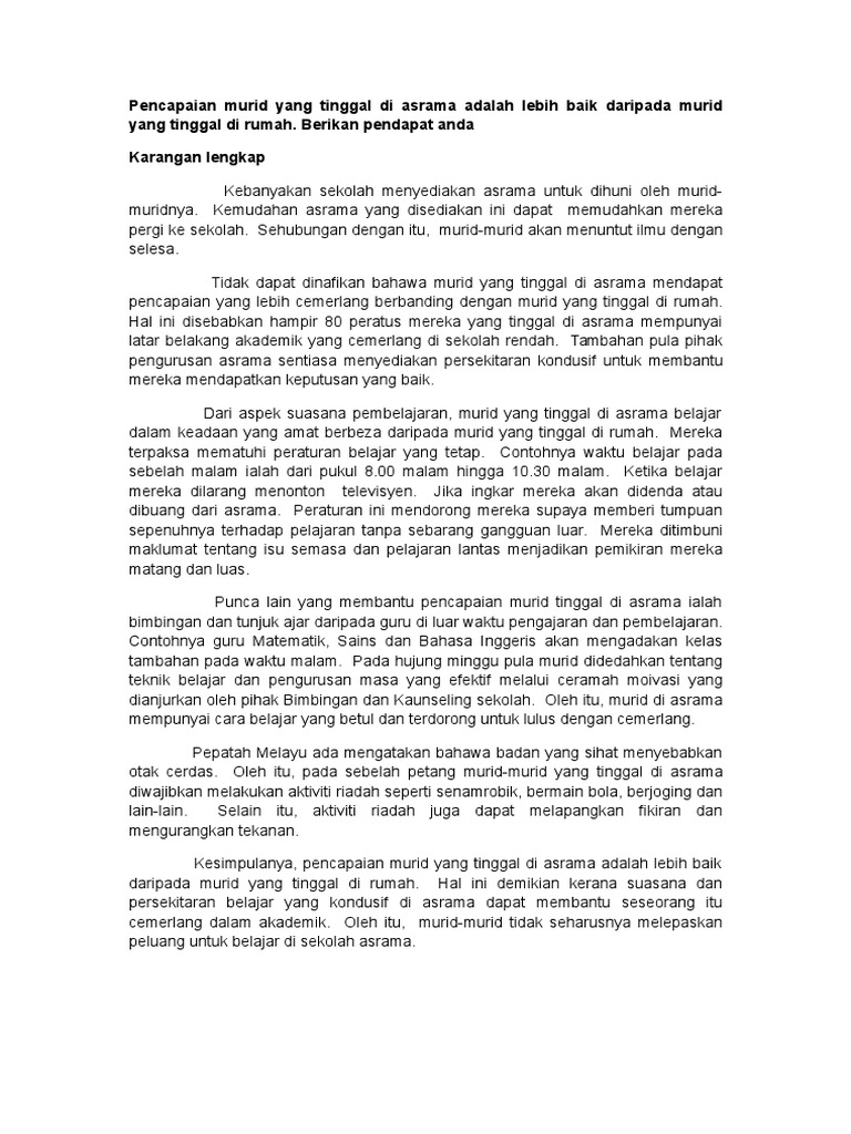 Contoh Karangan Pendapat Spm