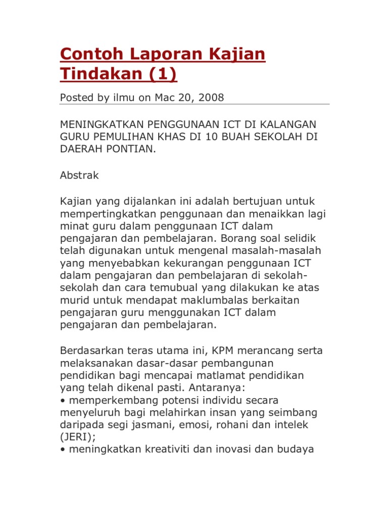 Contoh Laporan Kajian Tindakan
