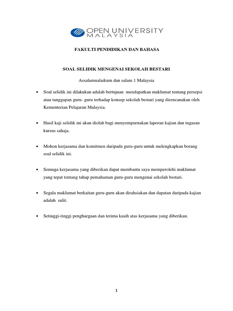 Borang Soal Selidik Instrumen Repository Of Maulana Malik