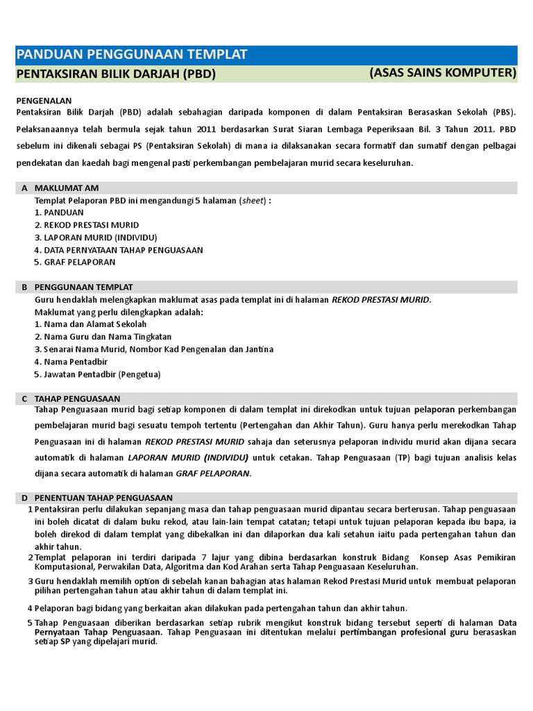 Panduan Penggunaan Templat Pentaksiran Bilik Darjah Pbd Asas Sains Komputer