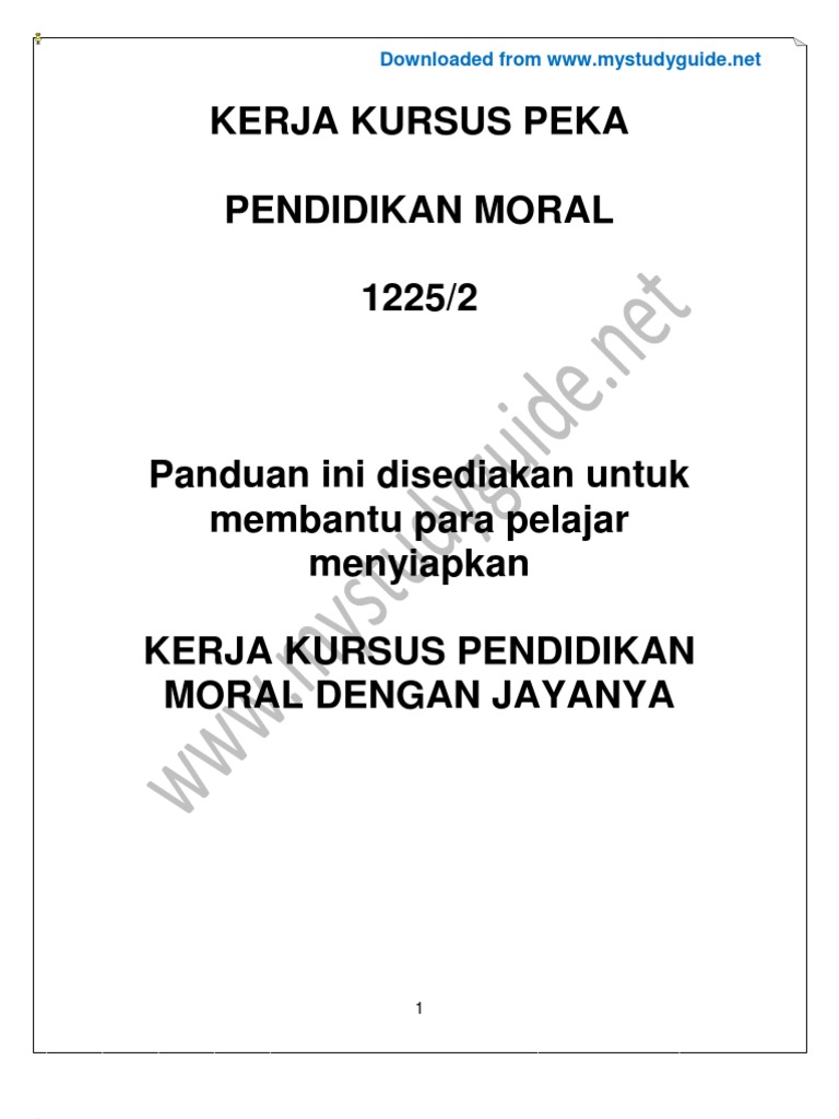 Panduan Kerja Kursus Pendidikan Moral 2012 Www Mystudyguide Net