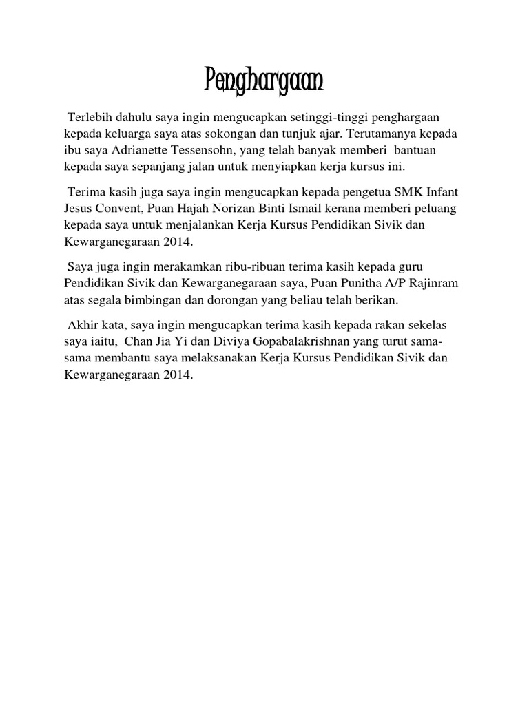 Contoh Penghargaan Kerja Kursus Sejarah Tingkatan 4