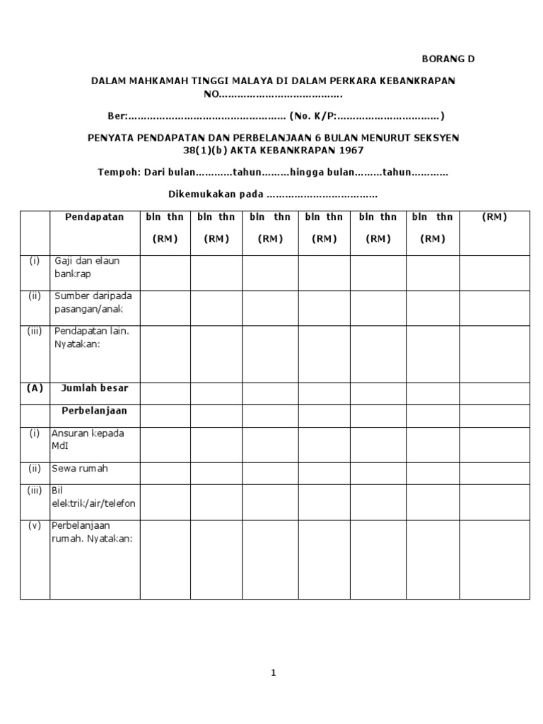 Borang D Penyata 6 Bulan