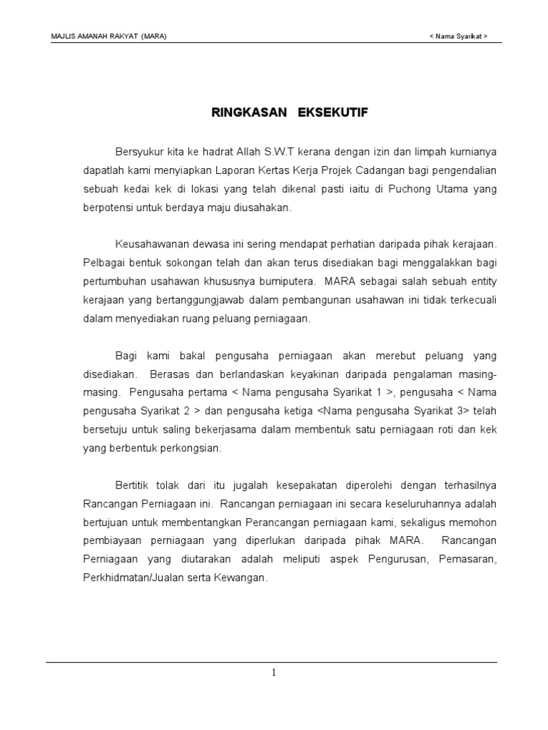 Contoh Kertas Kerja Rancangan Perniagaan 2017 Prettycore