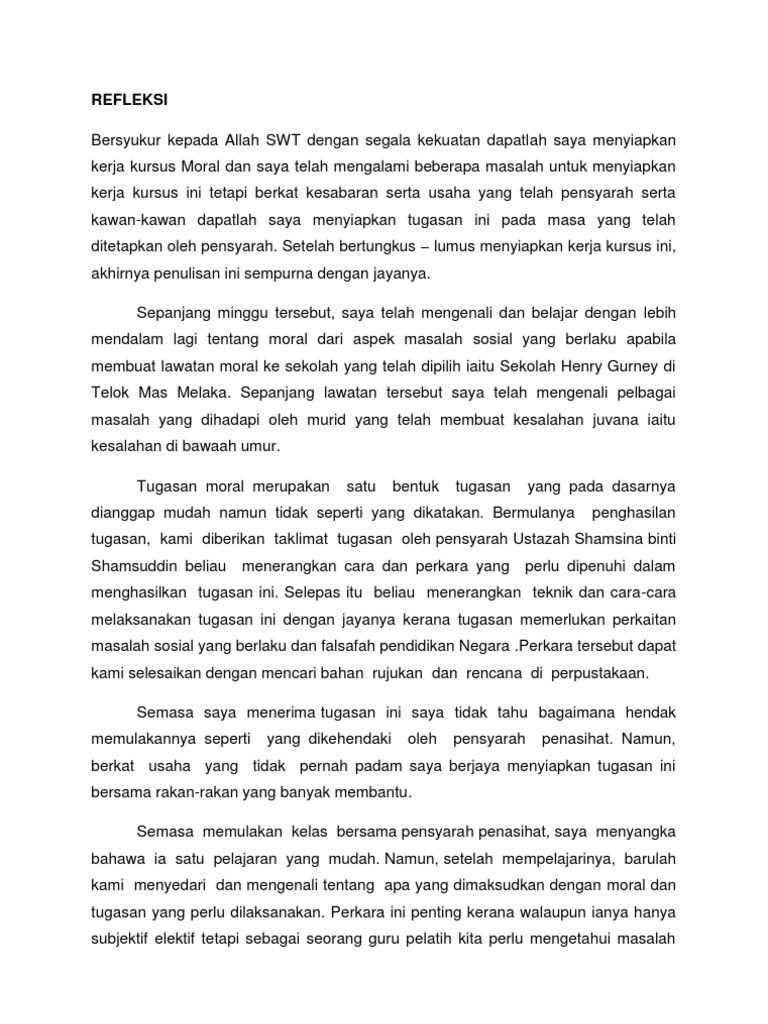 Doc Contoh Refleksi Zalina Razali Academia Edu