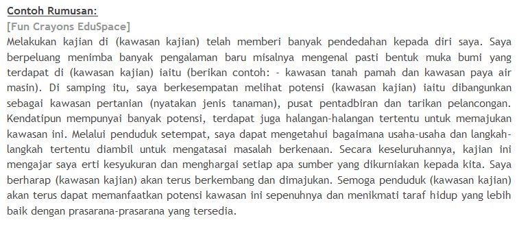 Contoh Rumusan Kerja Kursus Geografi Pt3