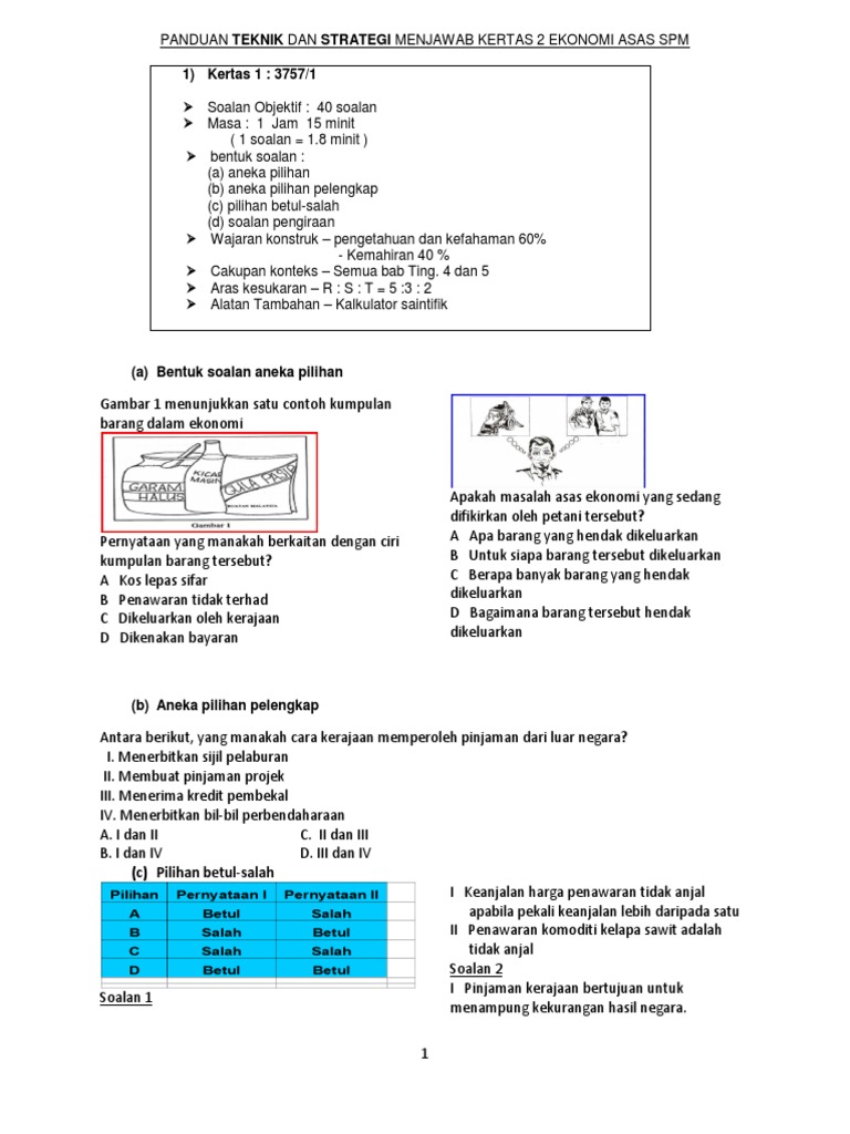 Contoh Soalan Ekonomi Tingkatan 4 Kertas 1 Soalan As