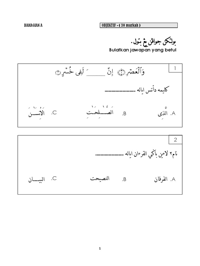 Contoh Soalan Peperiksaan Akhlak Tahun 1 Soalan Ak