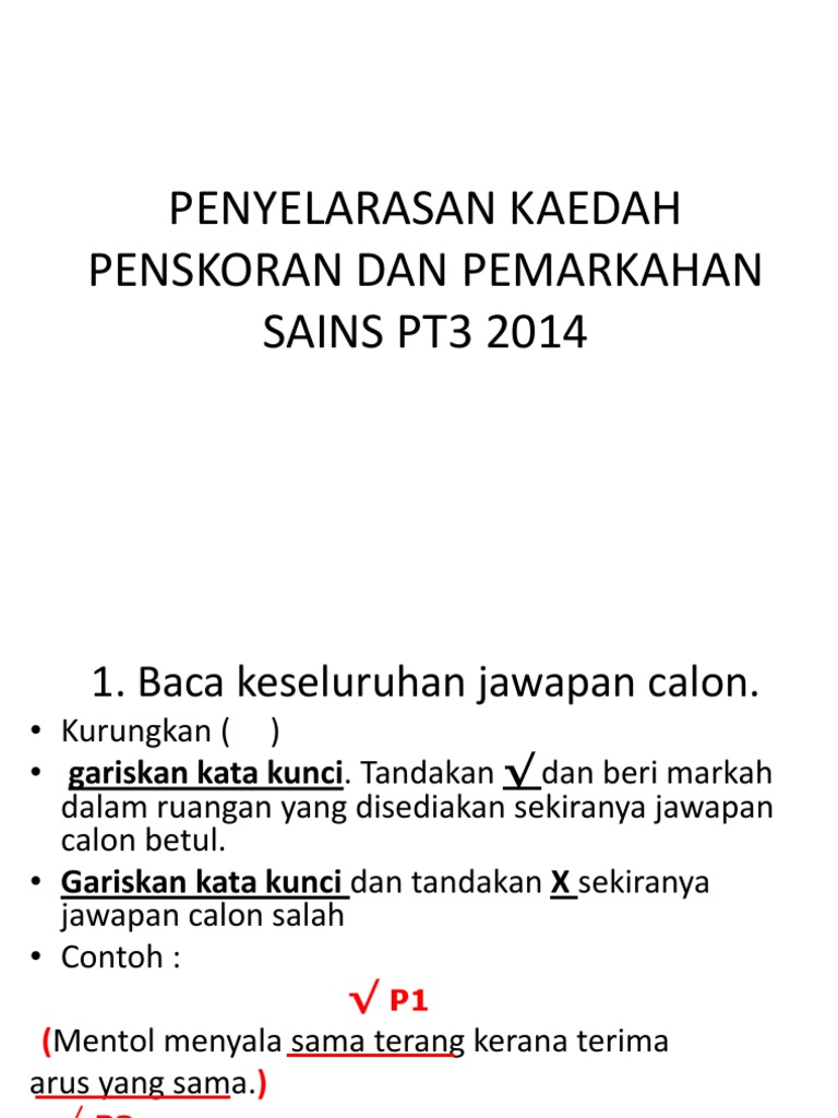 Penyelarasan Kaedah Penskoran Dan Pemarkahan Sains Pt3 2014