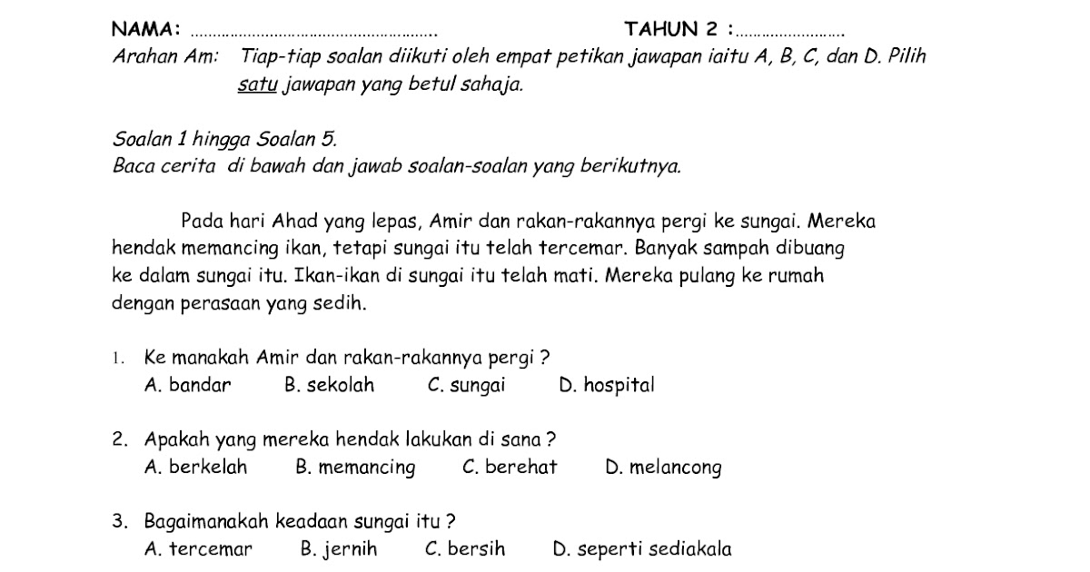 Soalan Bm Bahasa Melayu Pemahaman Tahun 5