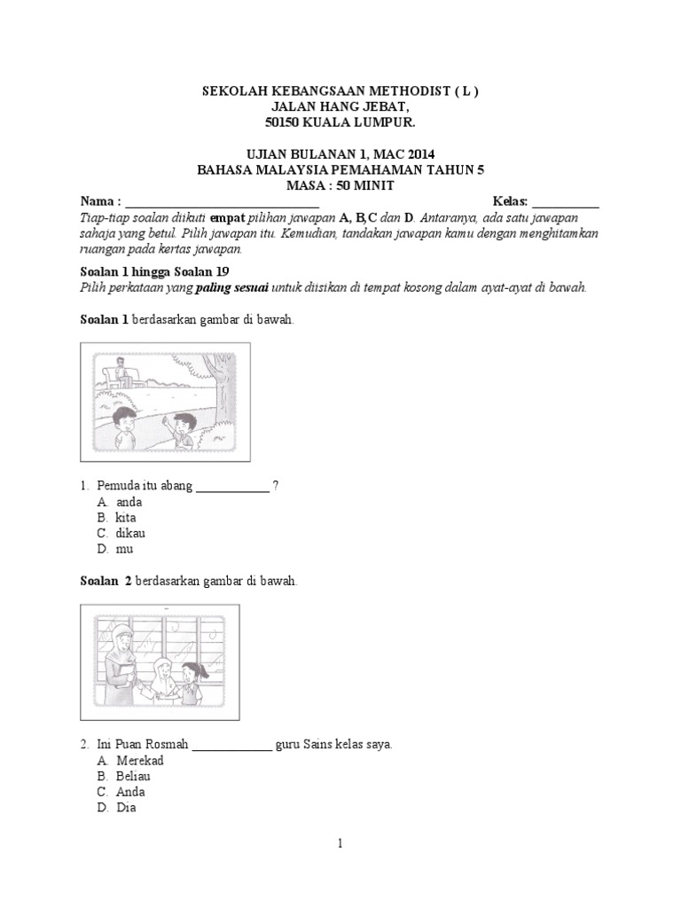 Contoh Soalan Ujian Bulan Mac Bahasa Melayu Tahun 1 I Soalan