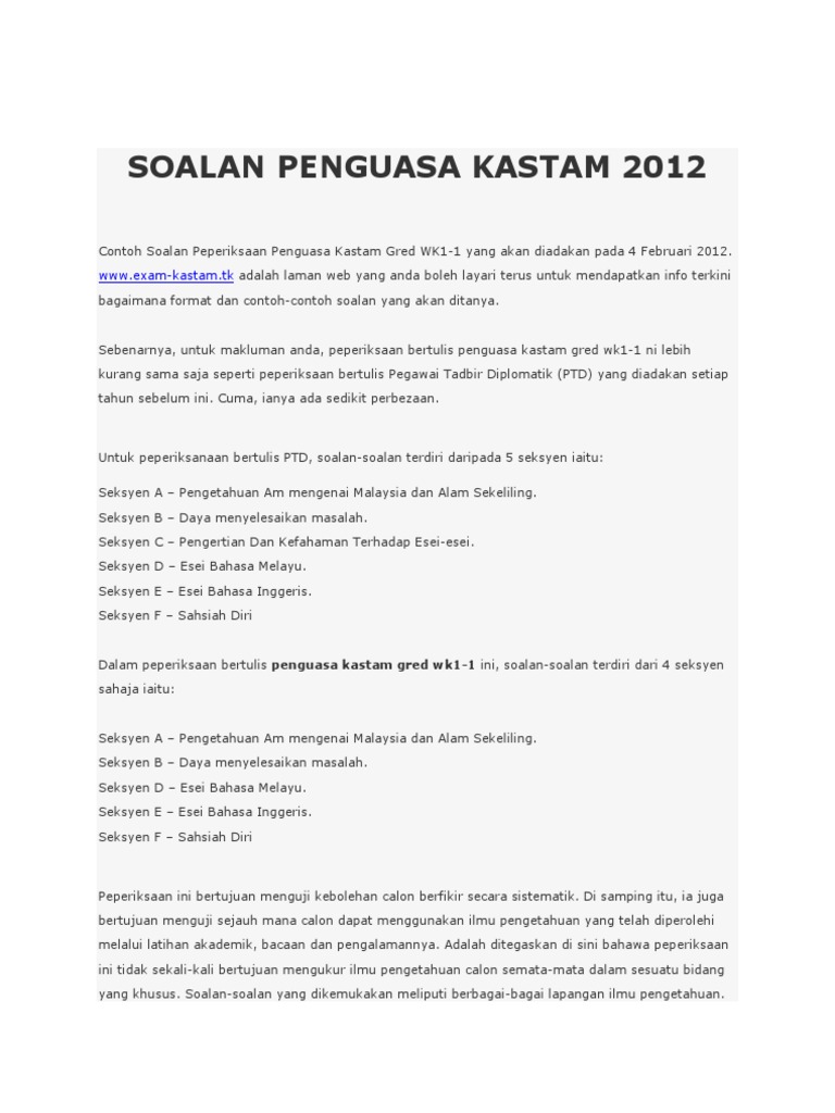 Soalan Penguasa Kastam 2012