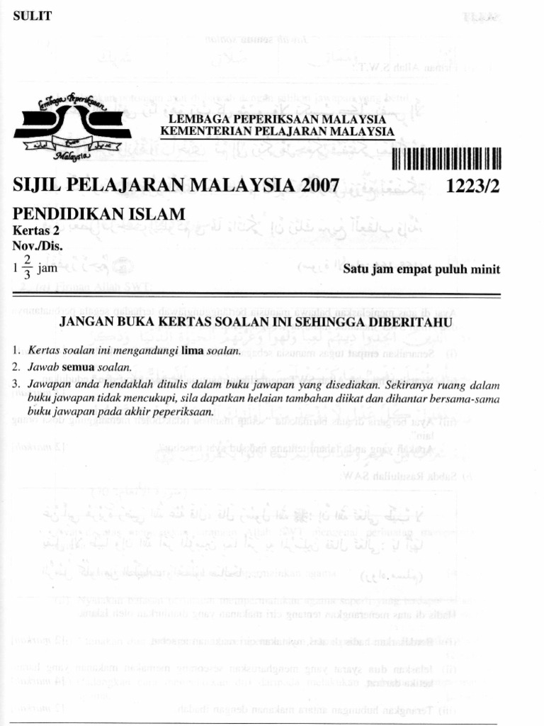 Soalan Spm 2019 Pendidikan Islam Jalan Kutai A