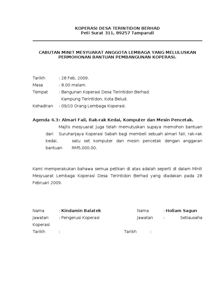 Doc Contoh Format Minit Mesyuarat Wawa Wawa Academia Edu
