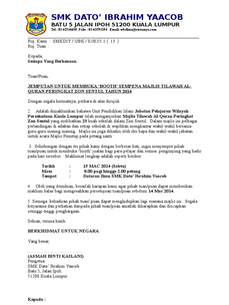 Contoh Surat Rasmi Jemputan Sekolah Serpong Contoh Surat Rasmi Jemputan Mesyuarat Contoh Surat Rasmi Jemputan Bahasa Inggris Contoh Surat Rasmi Jemputan Go Surat
