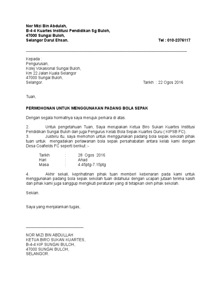 Contoh surat memohon kebenaran menggunakan padang sekolah. 2 saya selaku setiausaha persatuan bahasa melayu akan menganjurkan satu pertandingan bercerita peringkat sekolah. Surat permohonan pindah sekolah padang 19 maret 2019. Ada banyak aktivitas yang sah dilakukan hanya jika sudah mendapatkan izin dari pihak berwenang. Jadi kamu bisa menggunakan surat permohonan pindah sekolah dari orang tua murid seperti contoh yang sudah tertulis sebagai berikut.