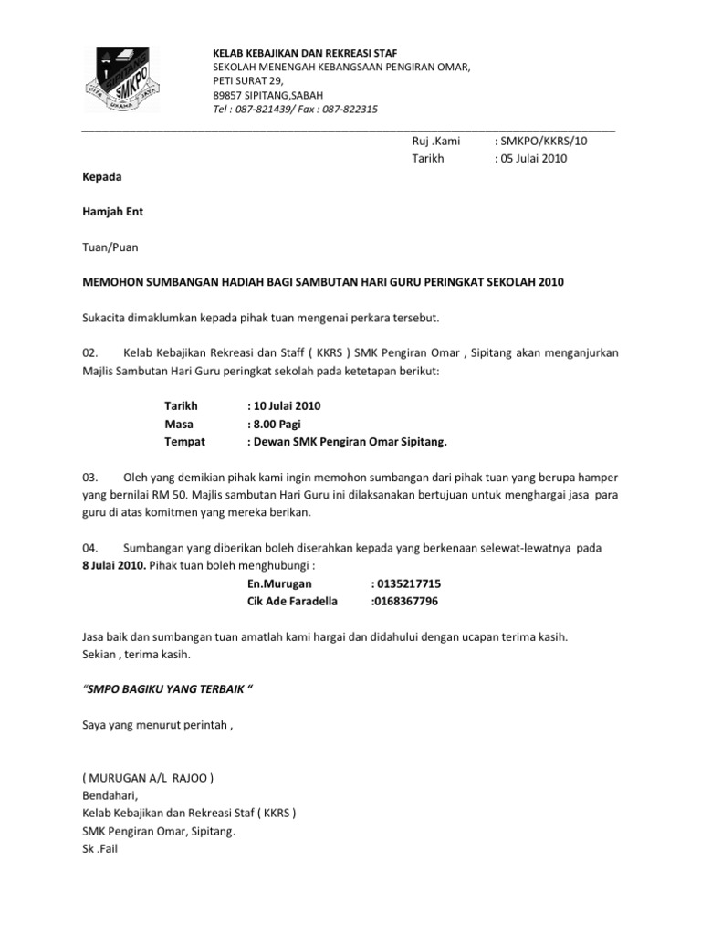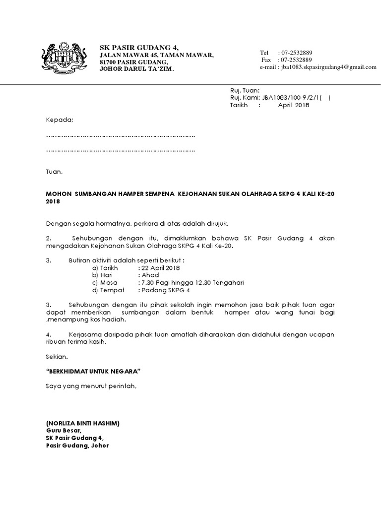 Surat Rasmi Memohon Sumbangan Hamper Info Melayu
