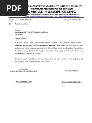 Surat Permohonan Maaf Pembatalan Praktik Industri