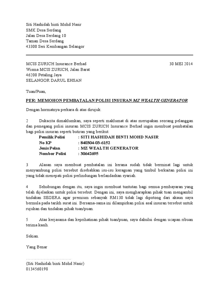 Cara Membatalkan Polisi Takaful Dan Contoh Surat Memohon Pembatalan Ibanding Making Better Decisions
