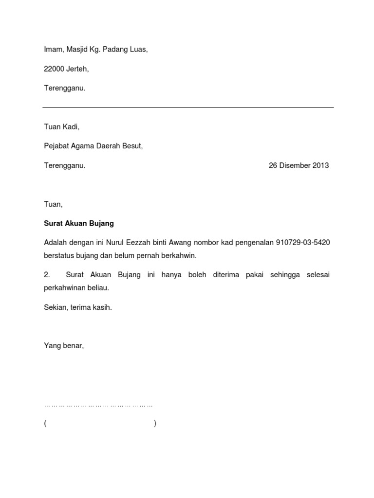 Contoh Surat Akuan Bujang Negeri Terengganu