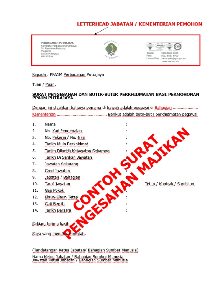 Contoh Surat Pengesahan Majikan Kakitangan Awam Cara Ku Mu