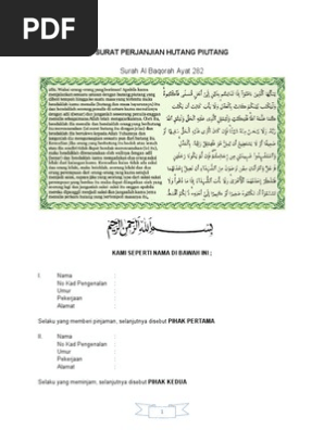 Surat Perjanjian Hutang Piutang Ringkas Cara Islam Secara Ansuran