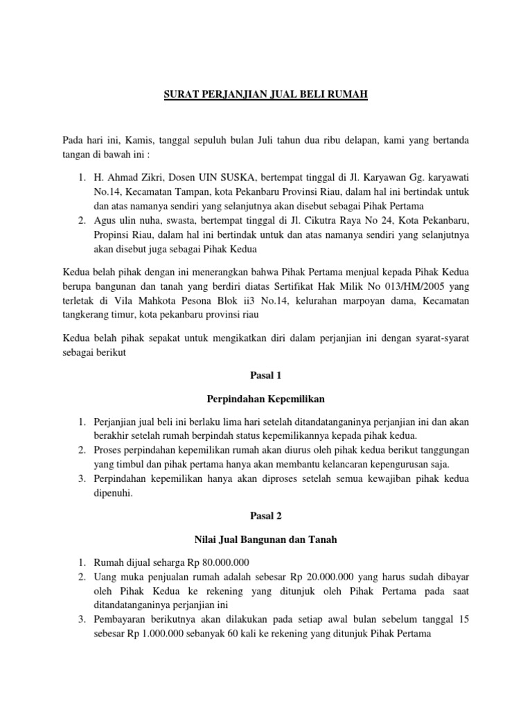 Surat Perjanjian Jual Beli Tanah Beserta Pasal Pasalnya Dapatkan Contoh