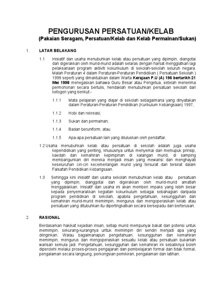 38 Contoh Dokumen Pengurusan Kokurikulum Doc Lampiran 1 Contoh Surat Permohonan Penubuhan Pasukan Pakaian Seragam Kelab Persatuan Dan Kelab Course Hero