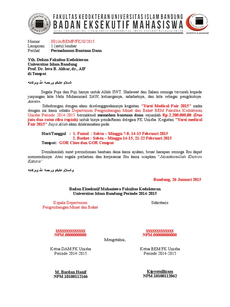 Contoh Surat Donatur Atau Permohonan Permintaan Dana