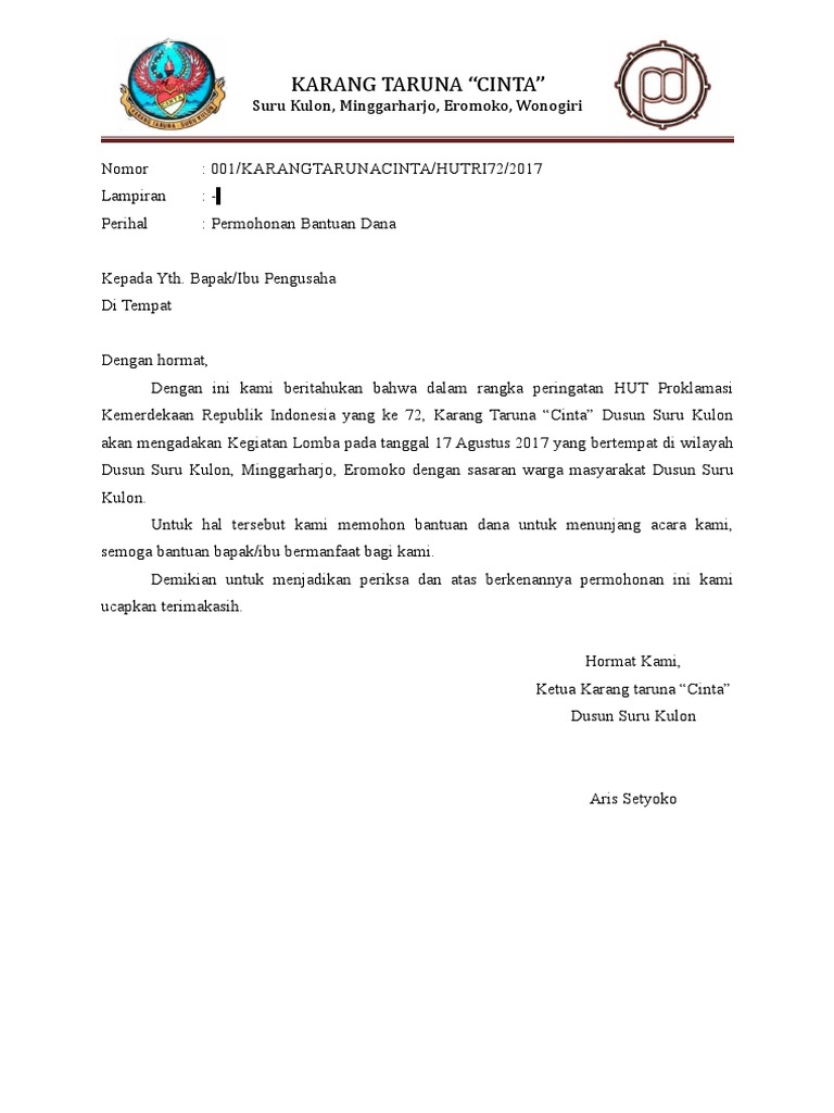 Contoh Surat Dan Proposal Permohonan Bantuan Dana Hut Ri Serbabisnis