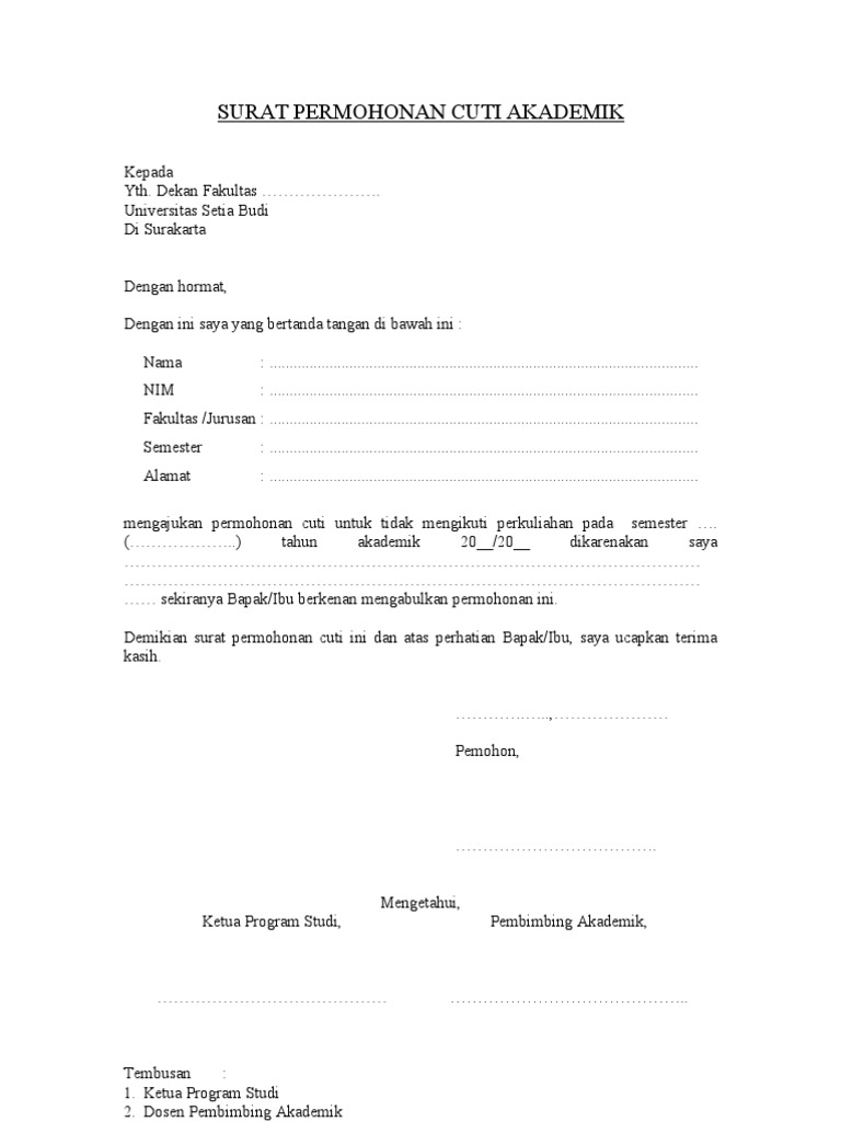 Pdf Contoh Surat Pengajuan Cuti Akademik Yaniex S Damar Academia Edu