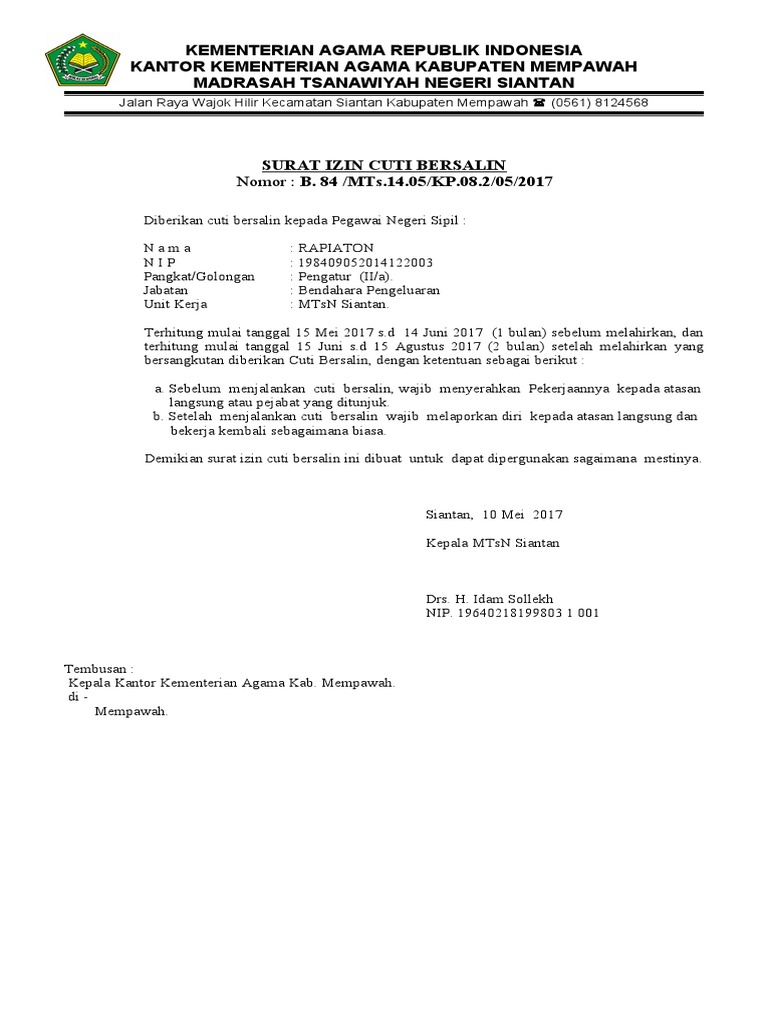 Doc Contoh Surat Cuti Melahirkan Untuk Guru Mc Reload Academia Edu