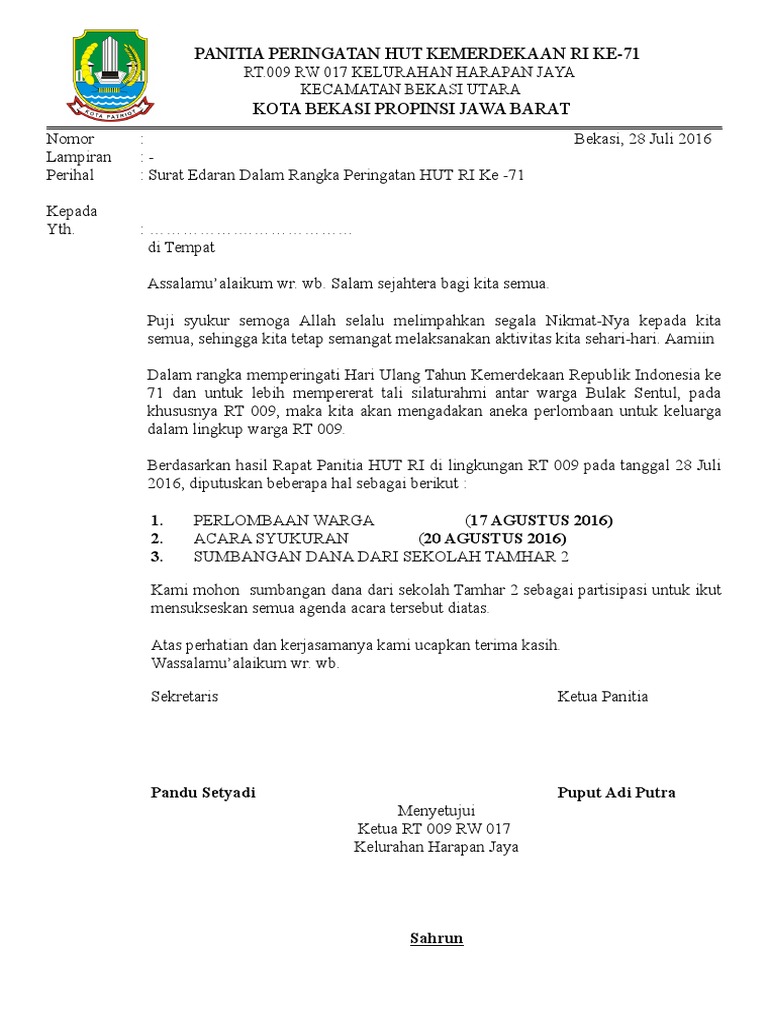 Doc Contoh Surat Edaran Meminta Sumbangan Untuk Acara Hut Ri Heri Sumanto Academia Edu
