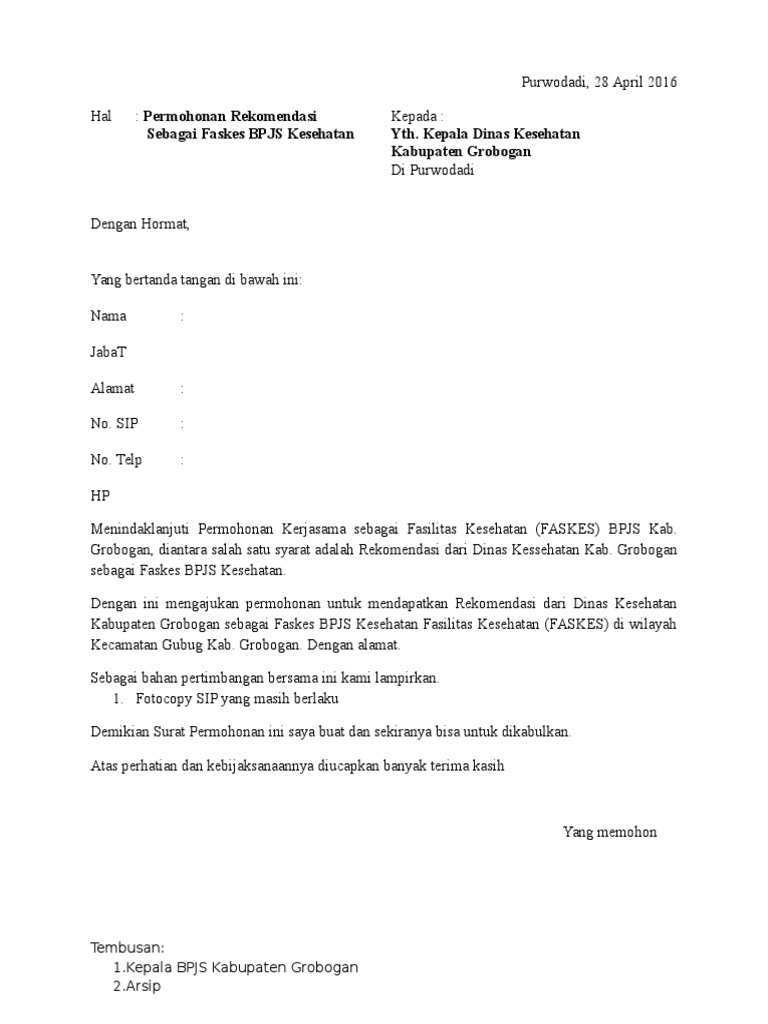 Surat Permohonan Kerja Sama Bpjs