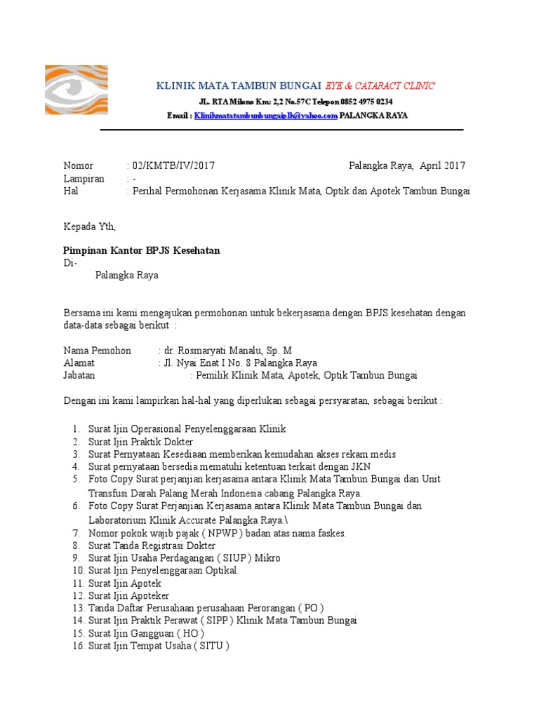 Contoh Surat Permohonan Kerjasama Optik Dengan Bpjs