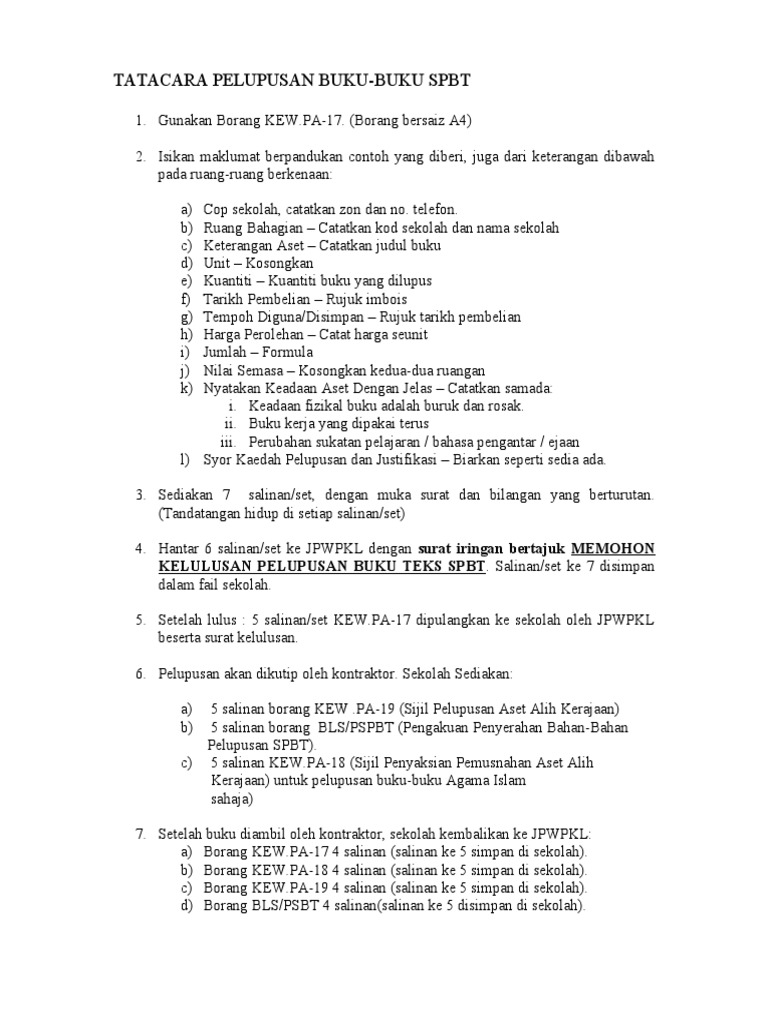 Rekod Pindaan Prosedur Kualiti A 01 Pdfsemak Dan Pastikan Dokumen Sokongan Seperti Berikut Mencukupi A Kew Pa 17 Seperti Di Lampiran 1 B Kew Pa 16 Seperti Di Lampiran 2 Pdf Document