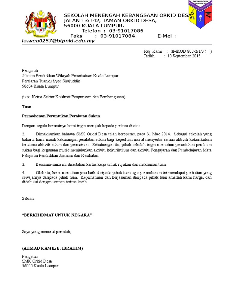 Surat Permohonan Peralatan Sukan