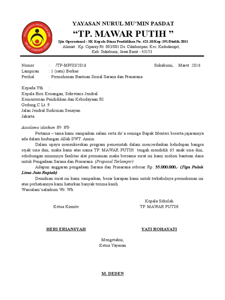 Contoh Surat Permohonan Dana Izin Bantuan Kerja Dll Lengkap