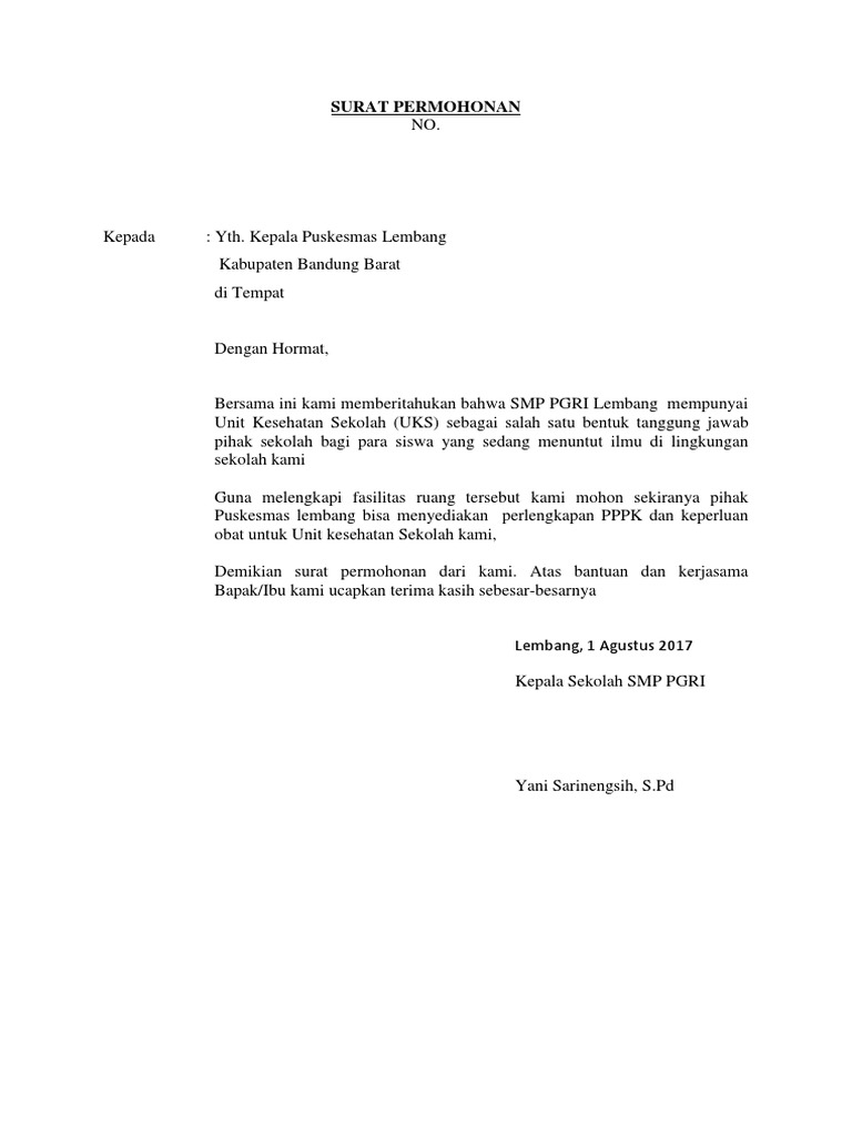 Doc Contoh Surat Permohonan Imam Najmudin Academia Edu