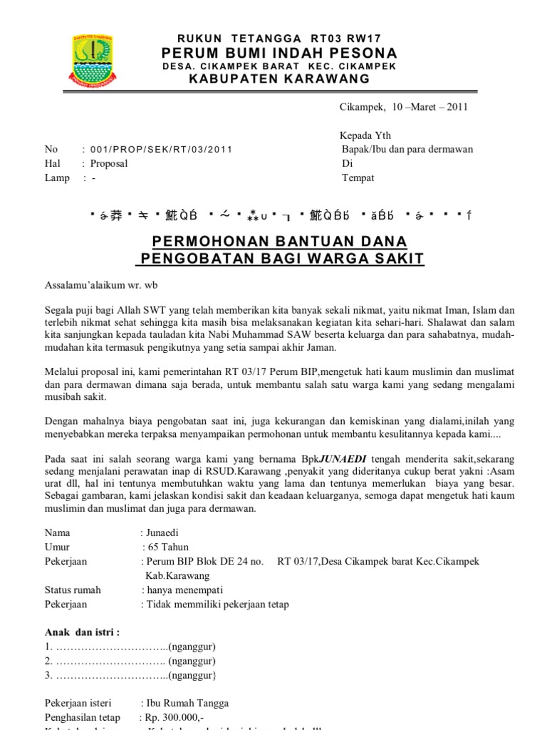 Contoh Surat Permohonan Sumbangan Orang Sakit