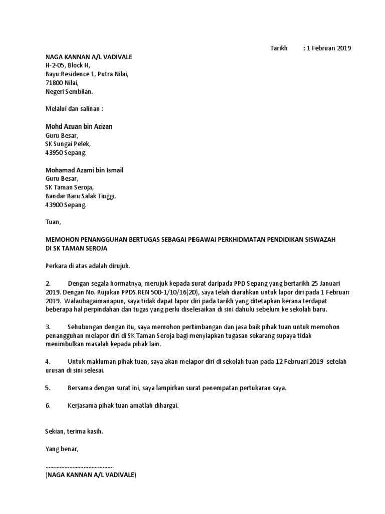 Contoh Surat Rasmi Penangguhan Lapor Diri