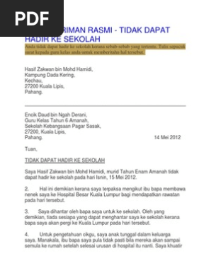 Contoh Surat Rasmi Tidak Hadir Ke Sekolah Pdf Bagikan Contoh