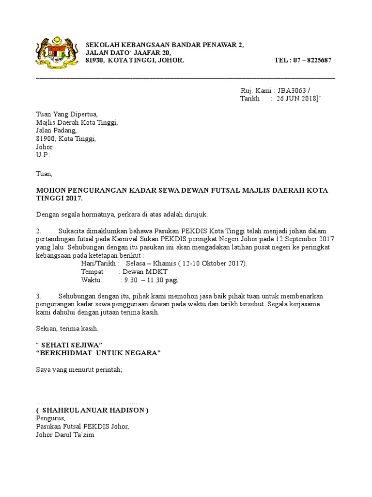 Anis Suryanie Contoh Surat Permohonan Menyewa Dewan