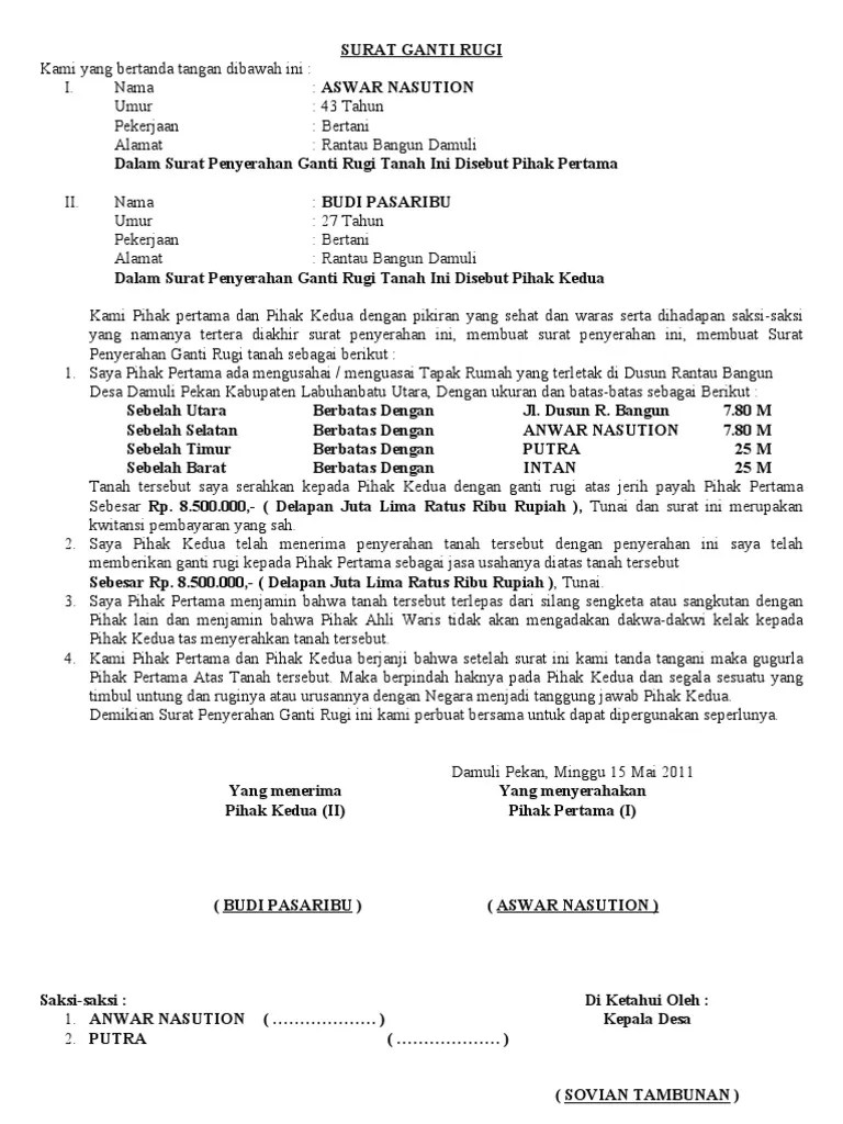 Contoh Surat Ganti Rugi Kehilangan Barang Download Kumpulan Gambar