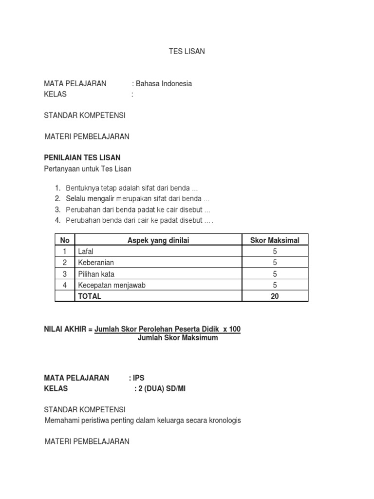 Format Penilaian Tes Lisan Guru Ilmu Sosial