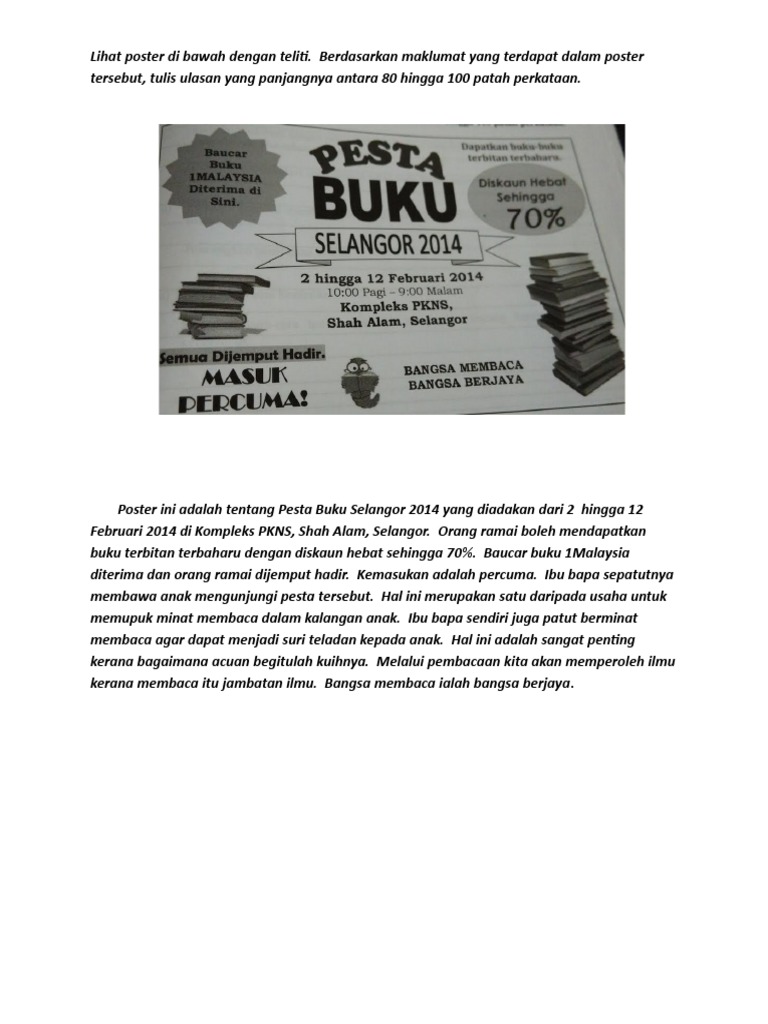 Menulis Ulasan Berdasarkan Poster Upsr Bm Penulisan Malay Language Exam Papers Education