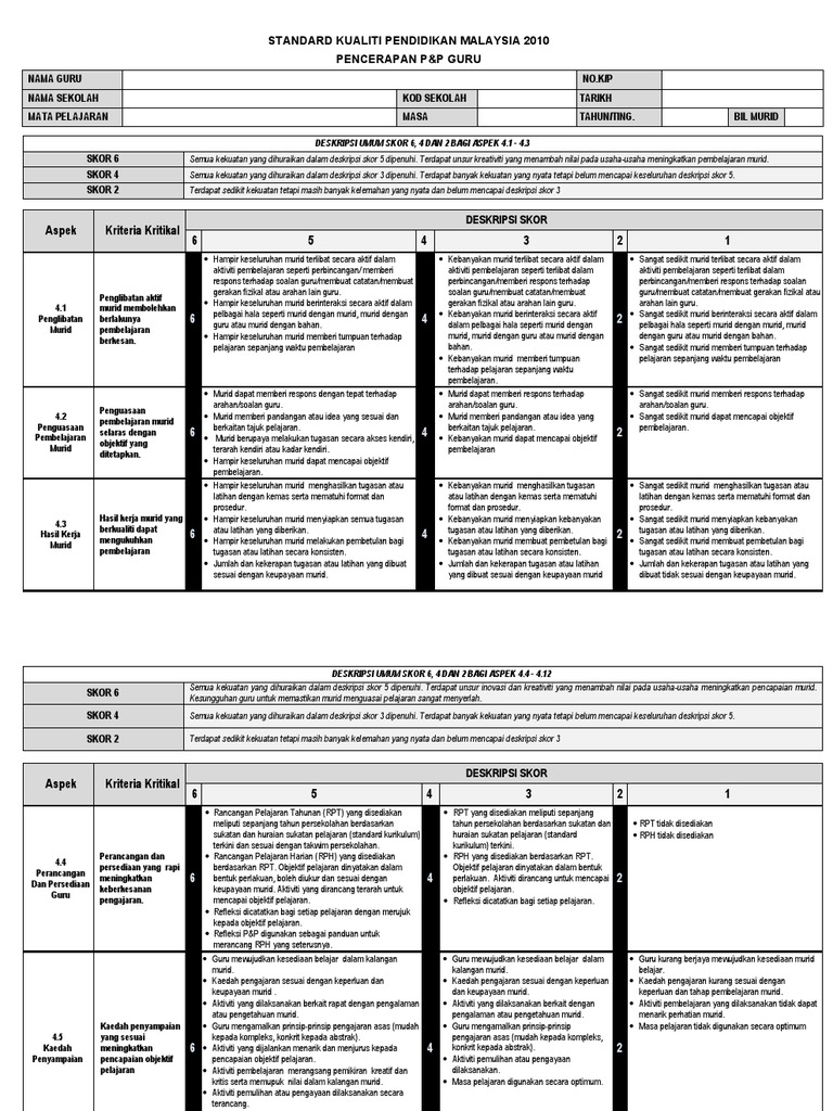 Borang Pencerapan Pengajaran Guru Format Skpm