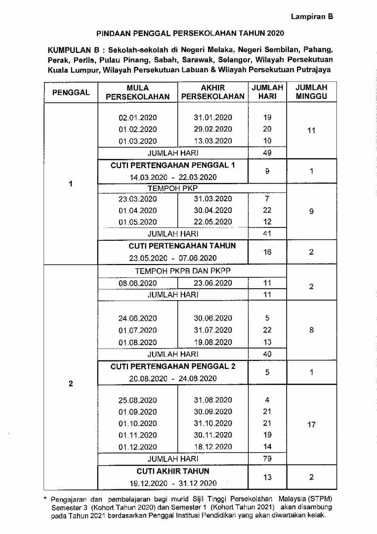 Takwim Persekolahan Pindaan Penggal Persekolahan 2020 Berita Kpm Gps Bestari